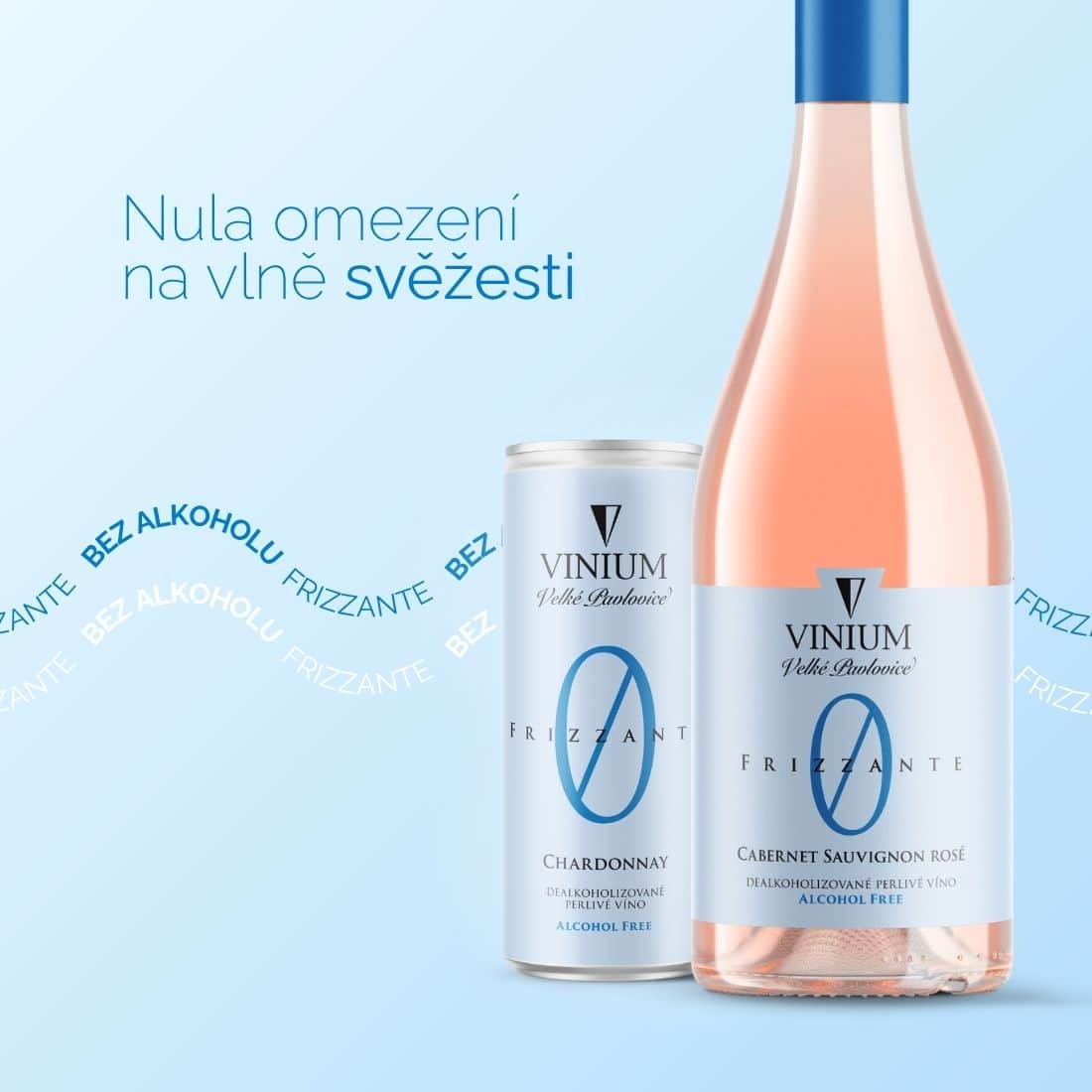 Klíčovým prvkem je výrazná modrá „0“, která vizuálně komunikuje nealkoholické víno a zároveň tvoří ústřední motiv celé produktové řady.