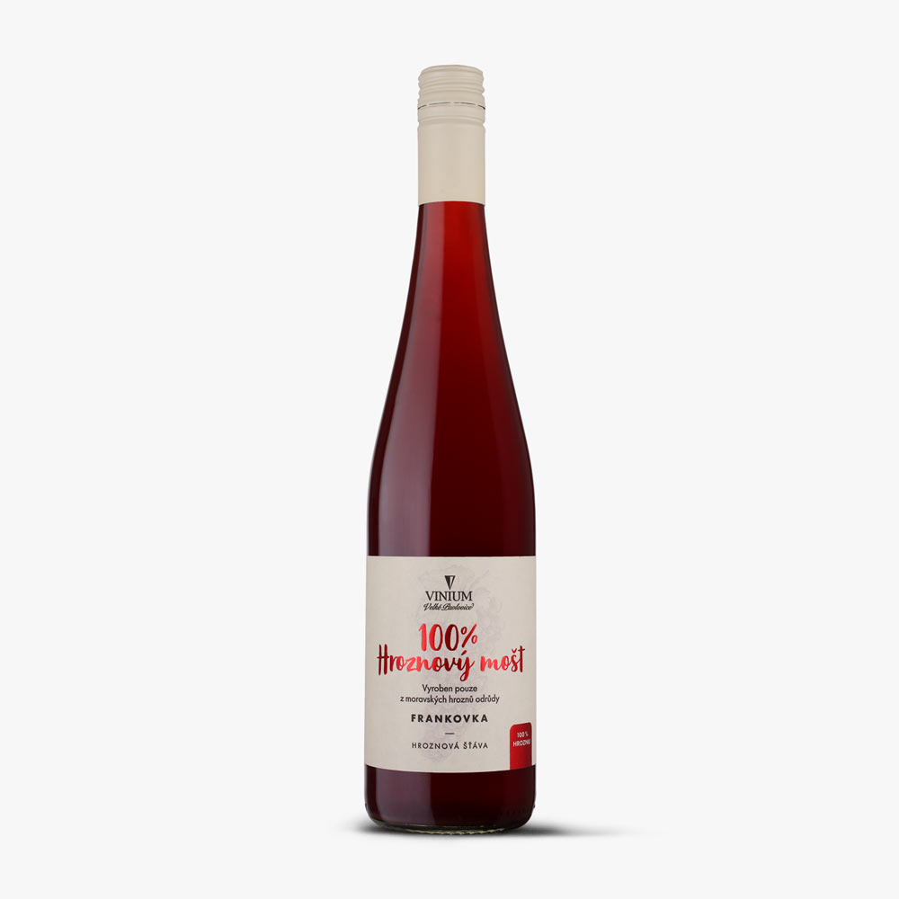 Mošt je vyroben pouze z moravských hroznů odrůdy Frankovka.