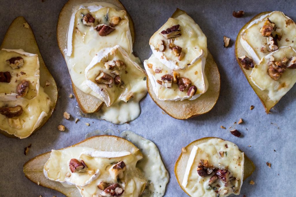 Vyzkoušejte jednoduchý recept – zapečené hrušky se sýrem doplněné o Muškát moravský z řady Rose collection.